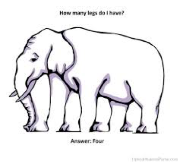 Ask the kids how many legs the elephant has. It looks like five, or maybe four. If there’s disagreement among the kids about how many legs, that’s really good.