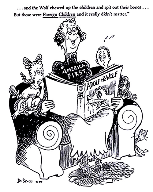 Before becoming famous for writing and illustrating children’s books, Dr. Seuss drew political cartoons and images for print ads. This eerily prescient cartoon was drawn on the eve of World War II.