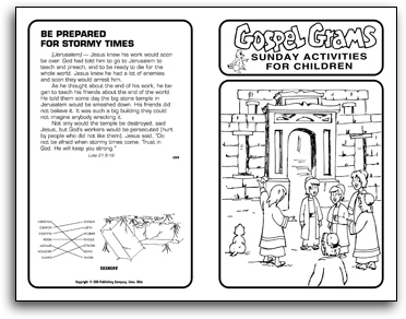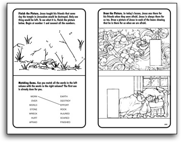 • Related coloring pictures help illustrate the basic Gospel lesson