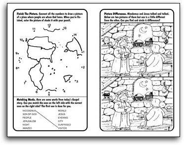 • Related coloring pictures help illustrate the basic Gospel lesson